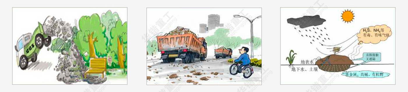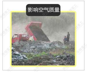 大多數(shù)城市建筑垃圾堆放地的選址在很大程度上具有隨意性,留下不少安全隱患。在外界因素的影響下,堆出現(xiàn)崩塌,阻礙道路甚至沖向其他建筑物的現(xiàn)象時(shí)有發(fā)生。 | 建筑垃圾在堆放和填埋過(guò)程中,由于發(fā)酵和雨水的淋溶、沖刷,以及地表水和地下水的浸泡而滲濾出的污水——滲濾液或淋濾液,造成周?chē)乇硭偷叵滤膰?yán)重污染。 | 隨著城市的不斷發(fā)展,大量的建筑垃圾隨意堆放,不僅占用土地,而且污染環(huán)境,并且直接或間接的影響空氣質(zhì)量。 | 隨著城市建筑垃圾量的增加,垃圾堆放點(diǎn)也在增加,而垃圾堆放場(chǎng)的面積也在逐漸擴(kuò)大。 |